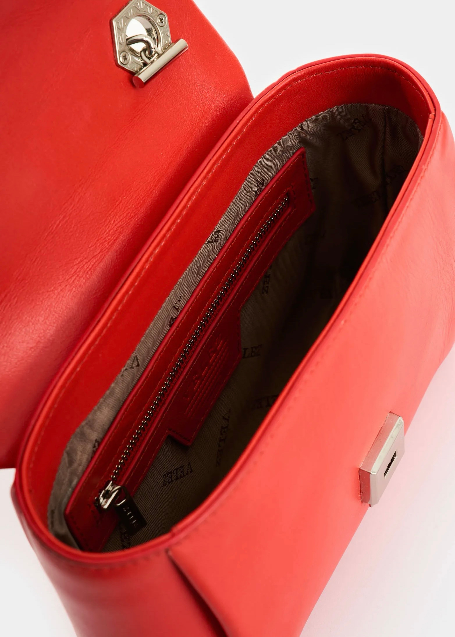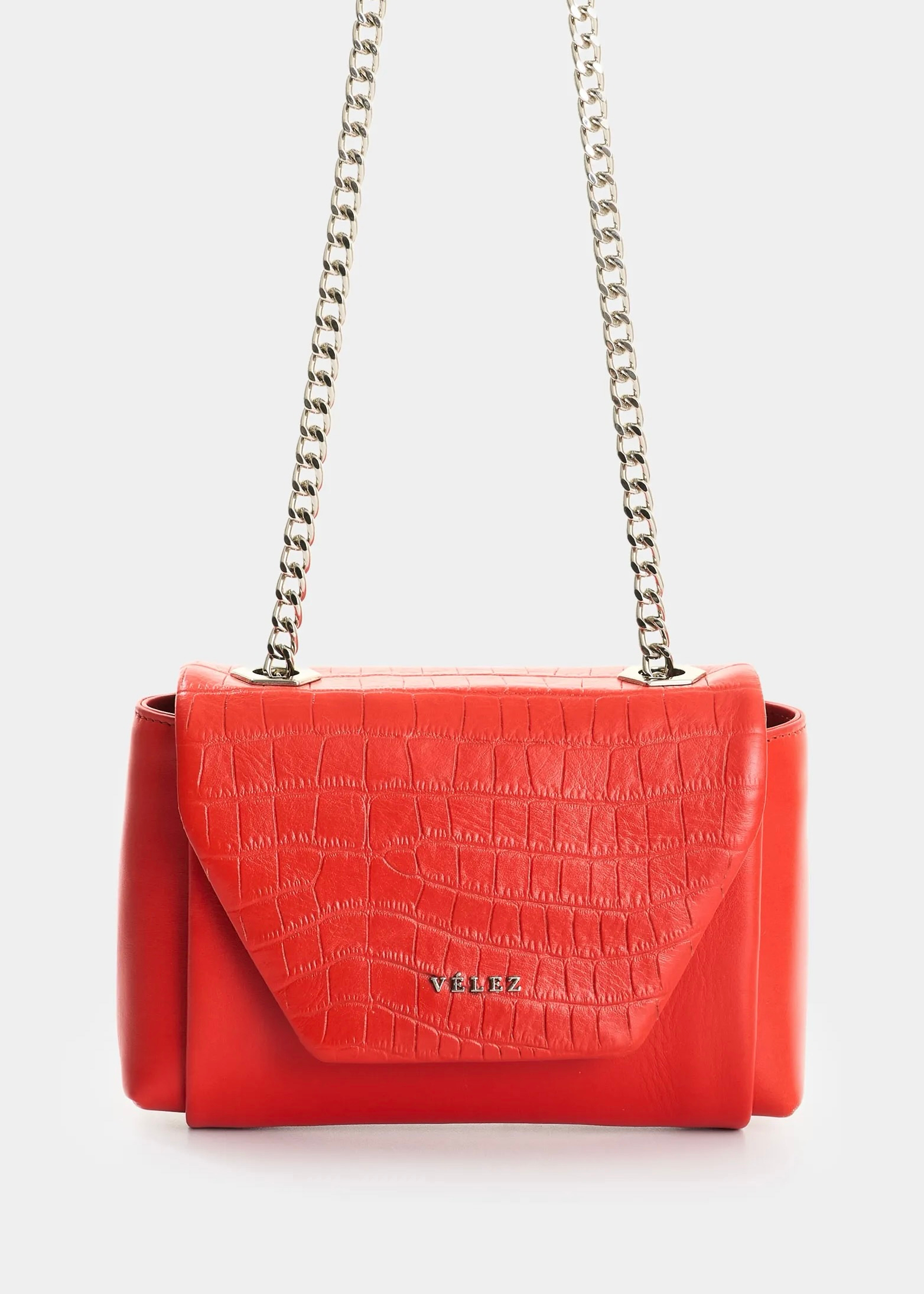 Diseño en estructura al detalle, ofrece espacio funcional con compartimentos internos, mientras su cargadera de cadena refleja una elegancia vanguardista. Artesanía y belleza en una expresión única.