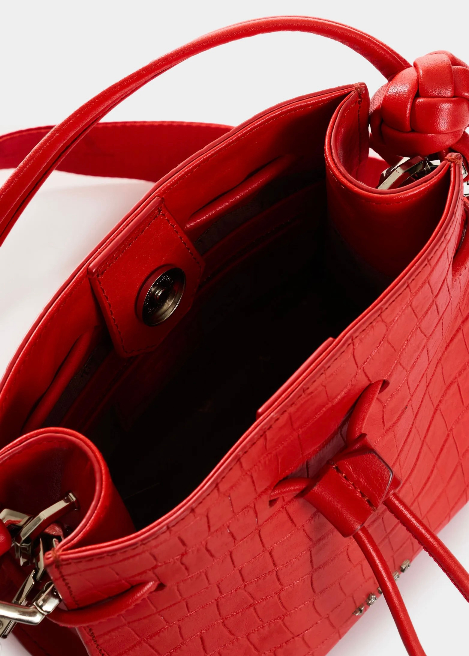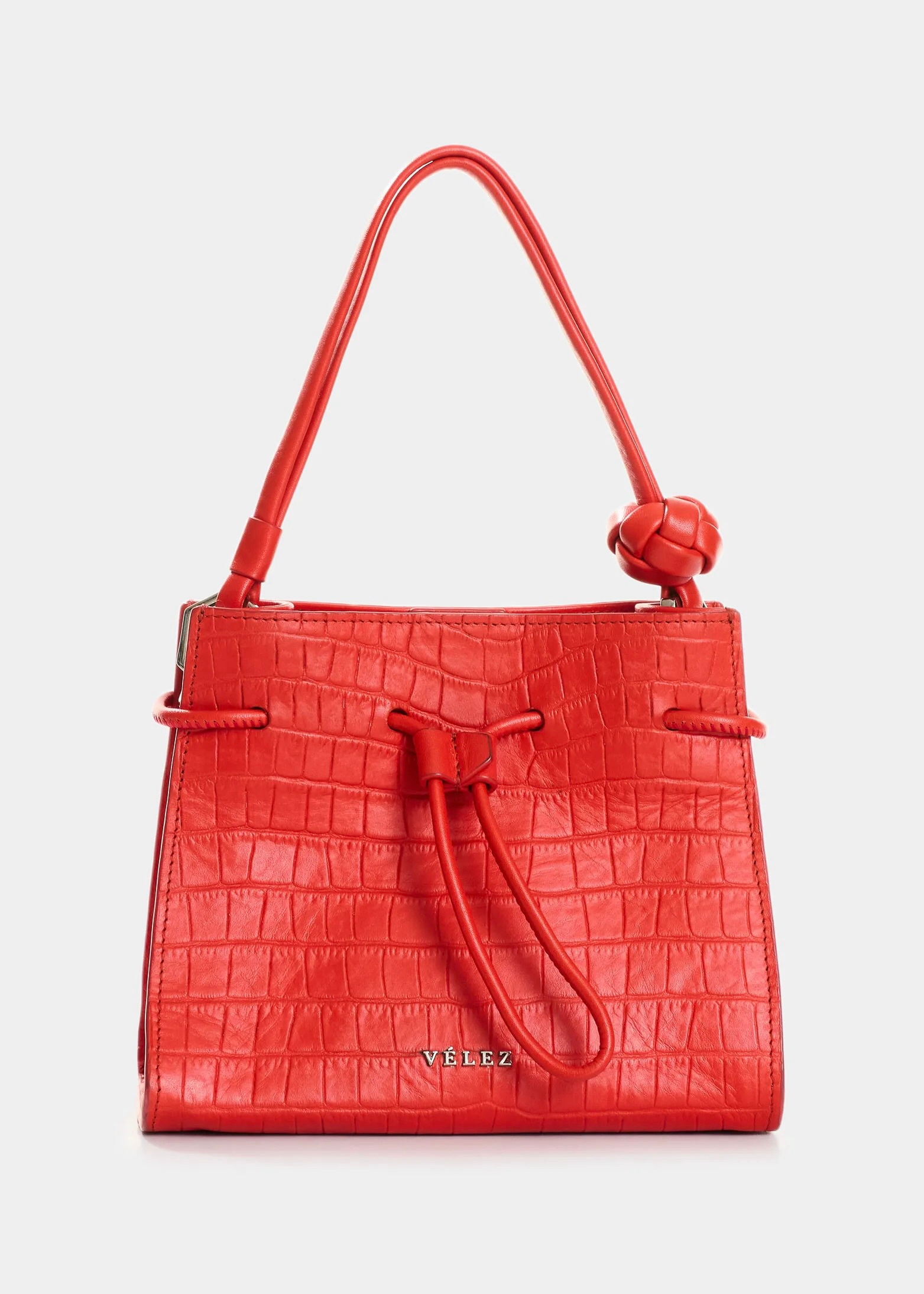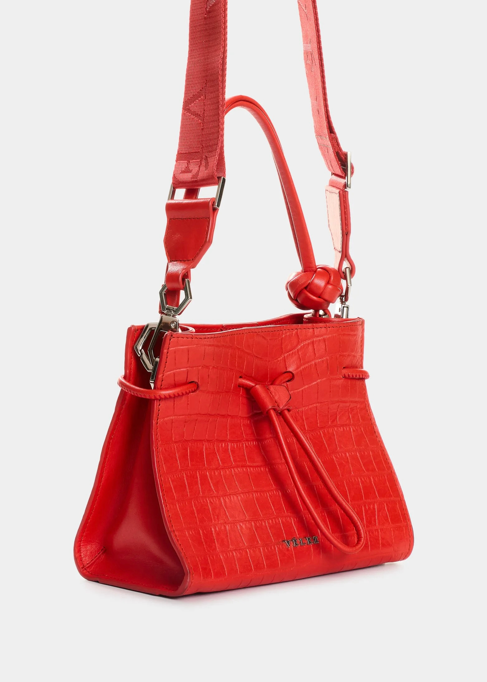 – Bandolera elaborada en cuero de estructura suave con grabado de placa tipo croco