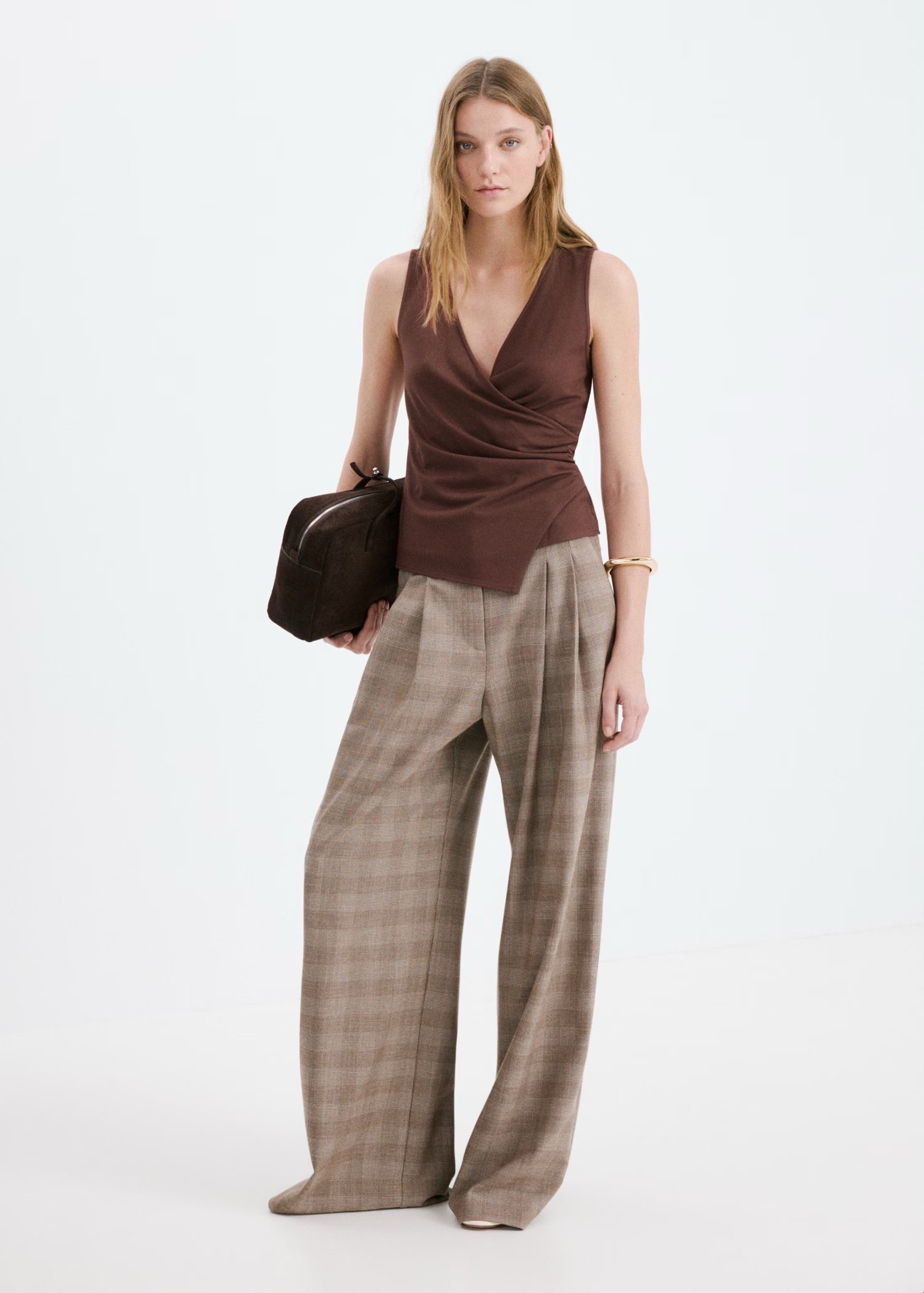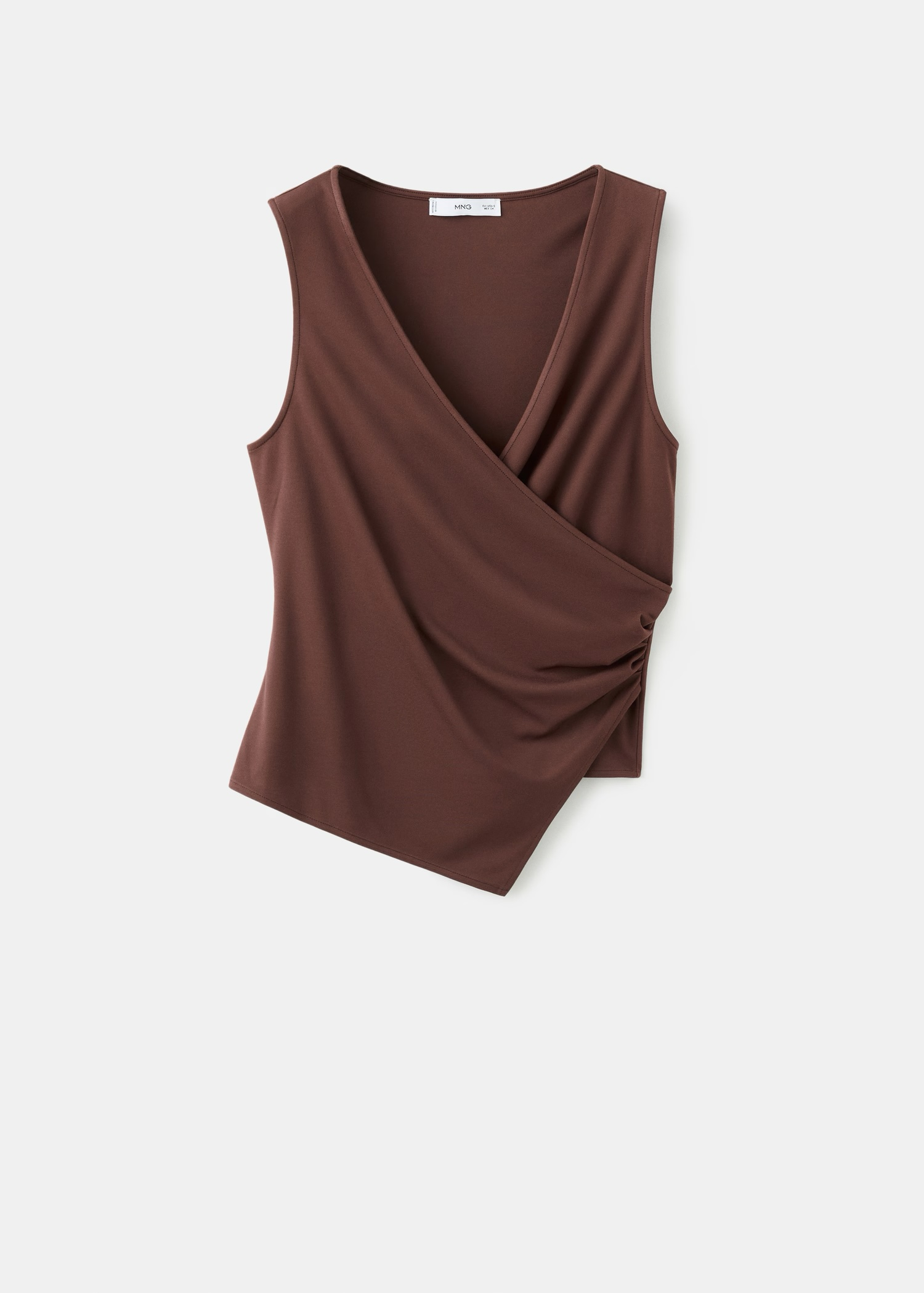 Diseño recto. Cuello de pico. Sin mangas. Tirantes anchos. Estilo cruzado. Bajo asimétrico. Sin cierre.