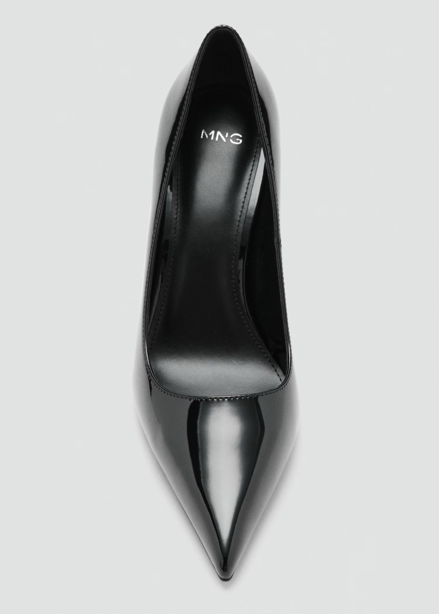 Diseño tacón de aguja con punta, efecto charol. Un básico que combina perfectamente con todos tus looks.